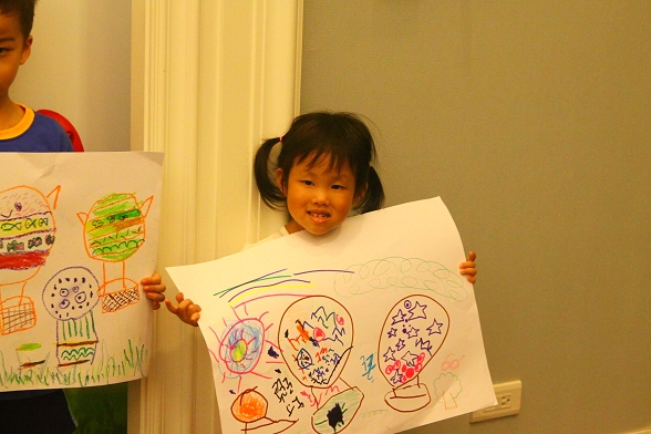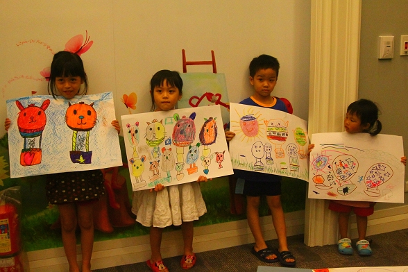 老師說已經畫玩的小朋友可以站到前面拍照唷!