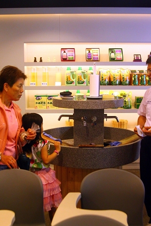 參觀完水晶肥皂,解說員帶我們到對面,原來是吃的地方!