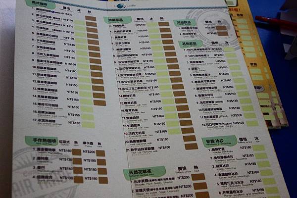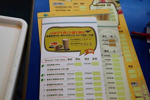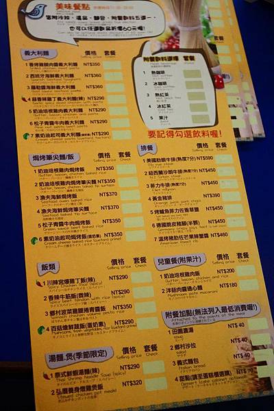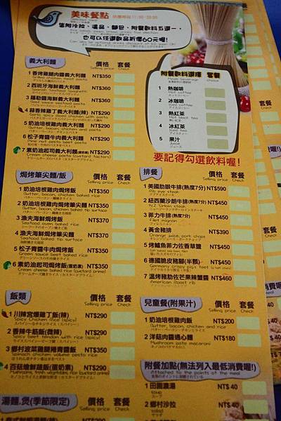 菜單,不收服物費。
