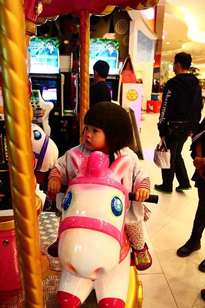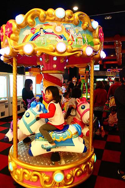 坐旋轉木馬,很划算,一次20元,3台一起動