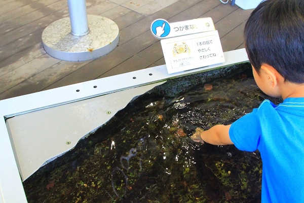 一開始姊姊妹妹都不敢摸(第一區是刺刺的海膽),但後面有一區是看起來很可愛的魚跟螃蟹,會躲到洞裡去那種,這對姊妹後來就不怕了。